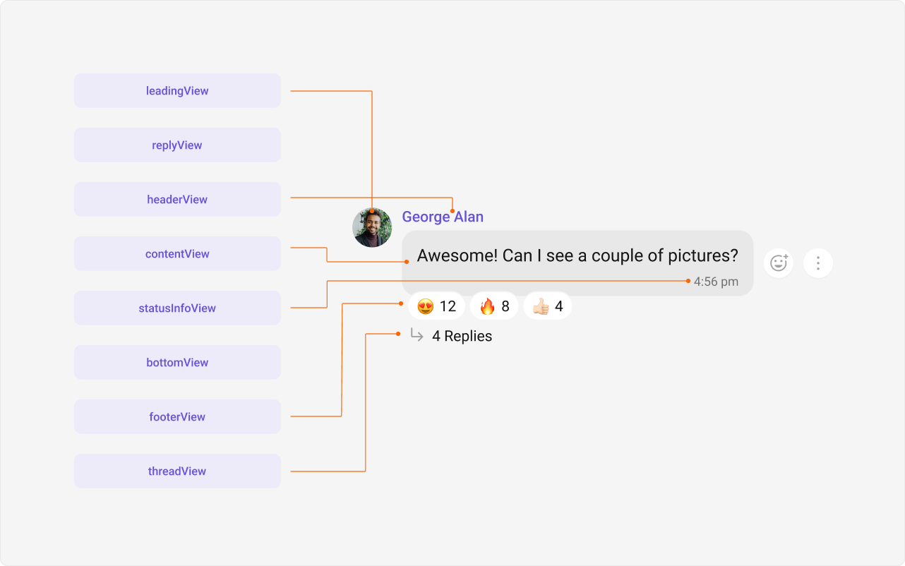 - Reply view: This view can be used to extend the Message Bubble with additional elements. It’s typically placed above the Content view.