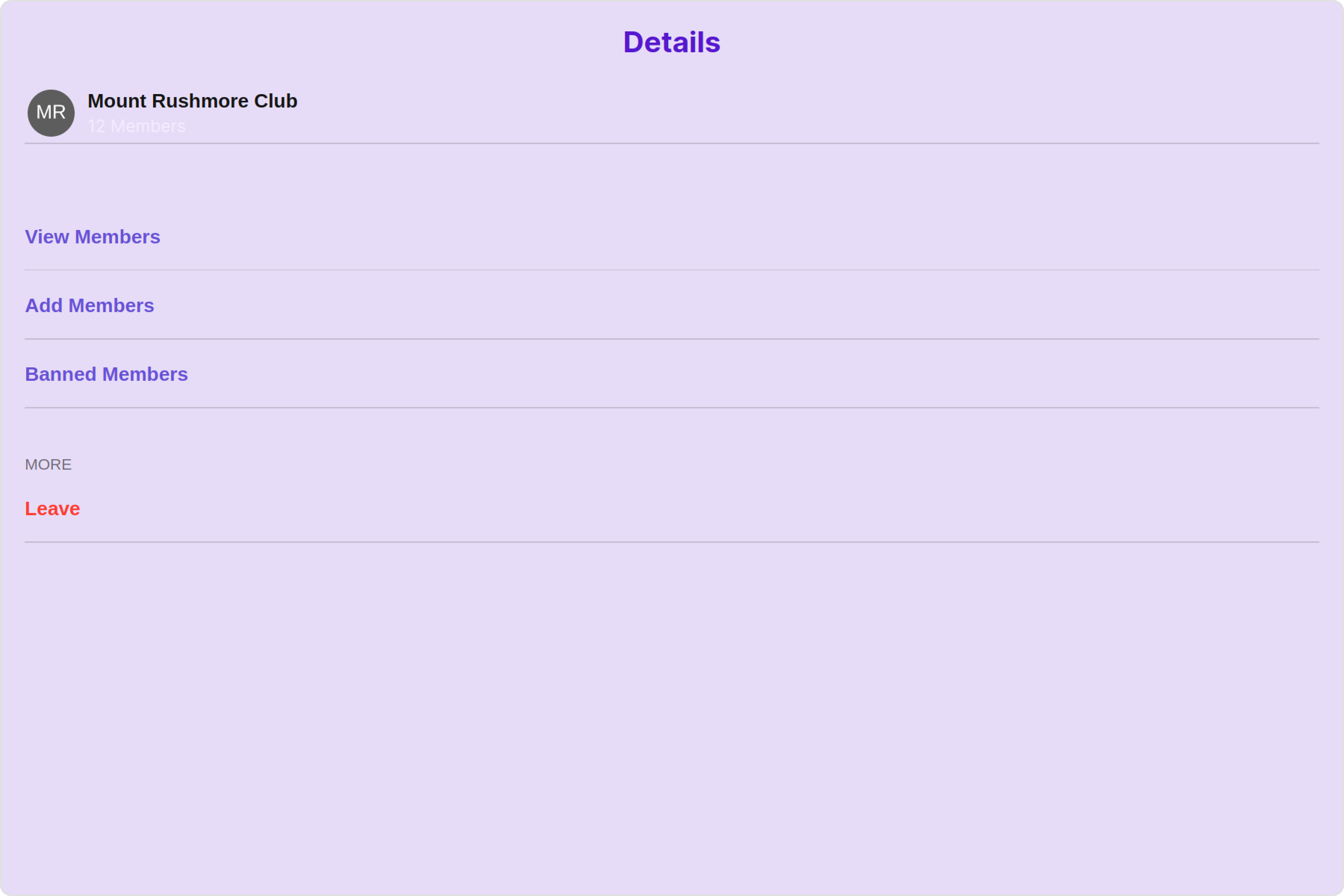 - Group Actions: This offers actions related to the group, such as leaving the group, or deleting the group.
